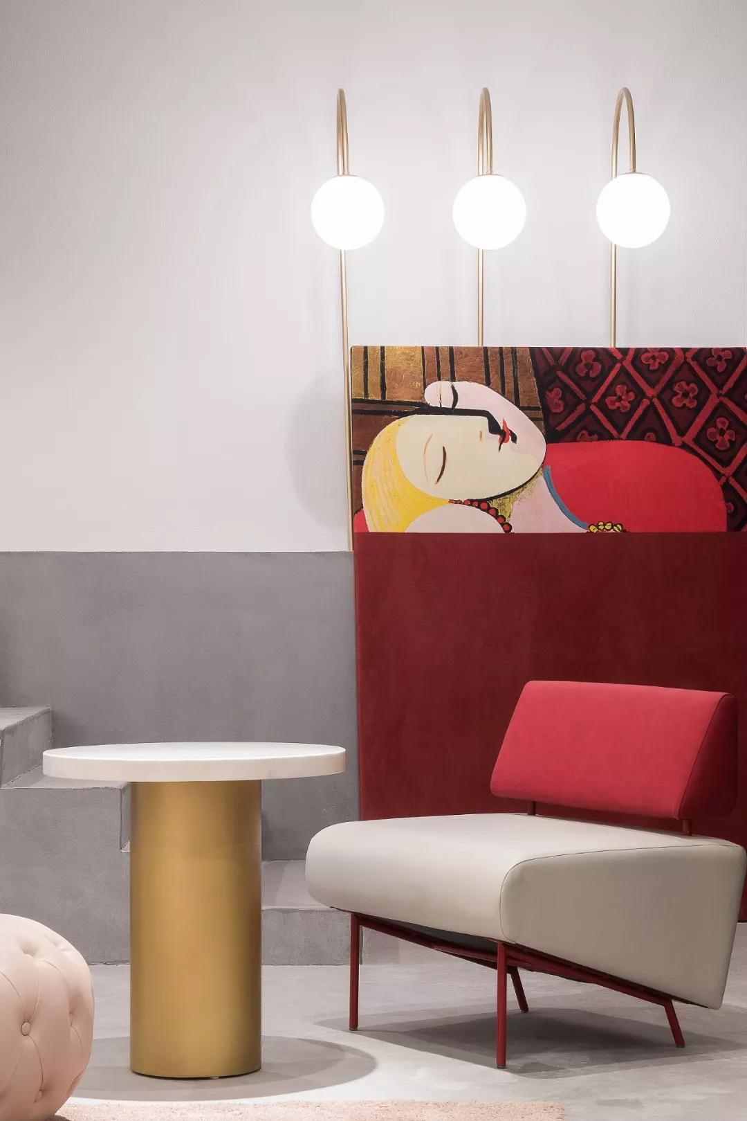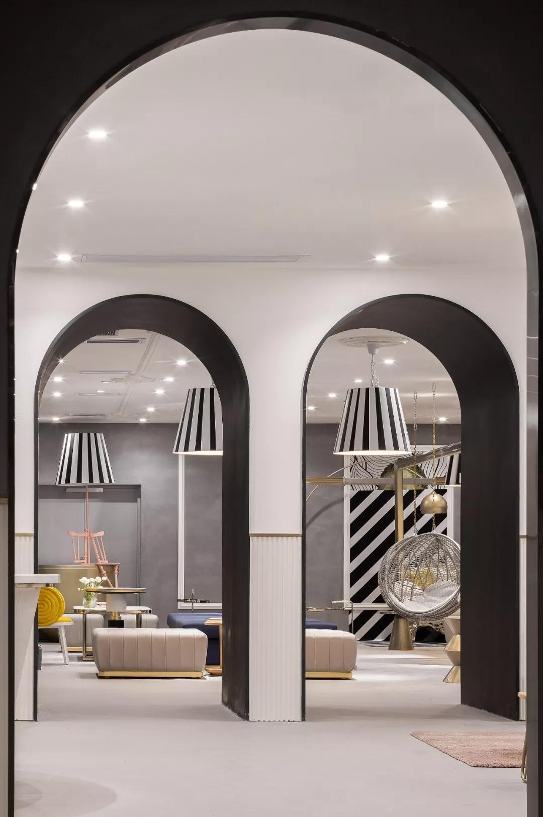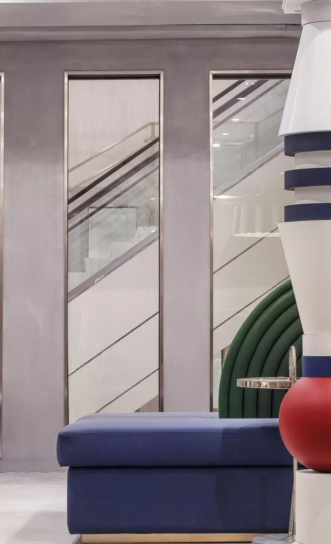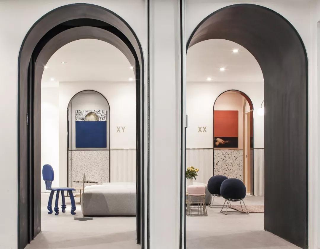 动静分离的布置,一方面让视觉点更集中,一方面也便于后期的运营管理。从主大堂扶梯上来,首先看到的是work hard 的欢迎橱窗,然后转身会看到一个特别怪诞、艺术的公共客厅。