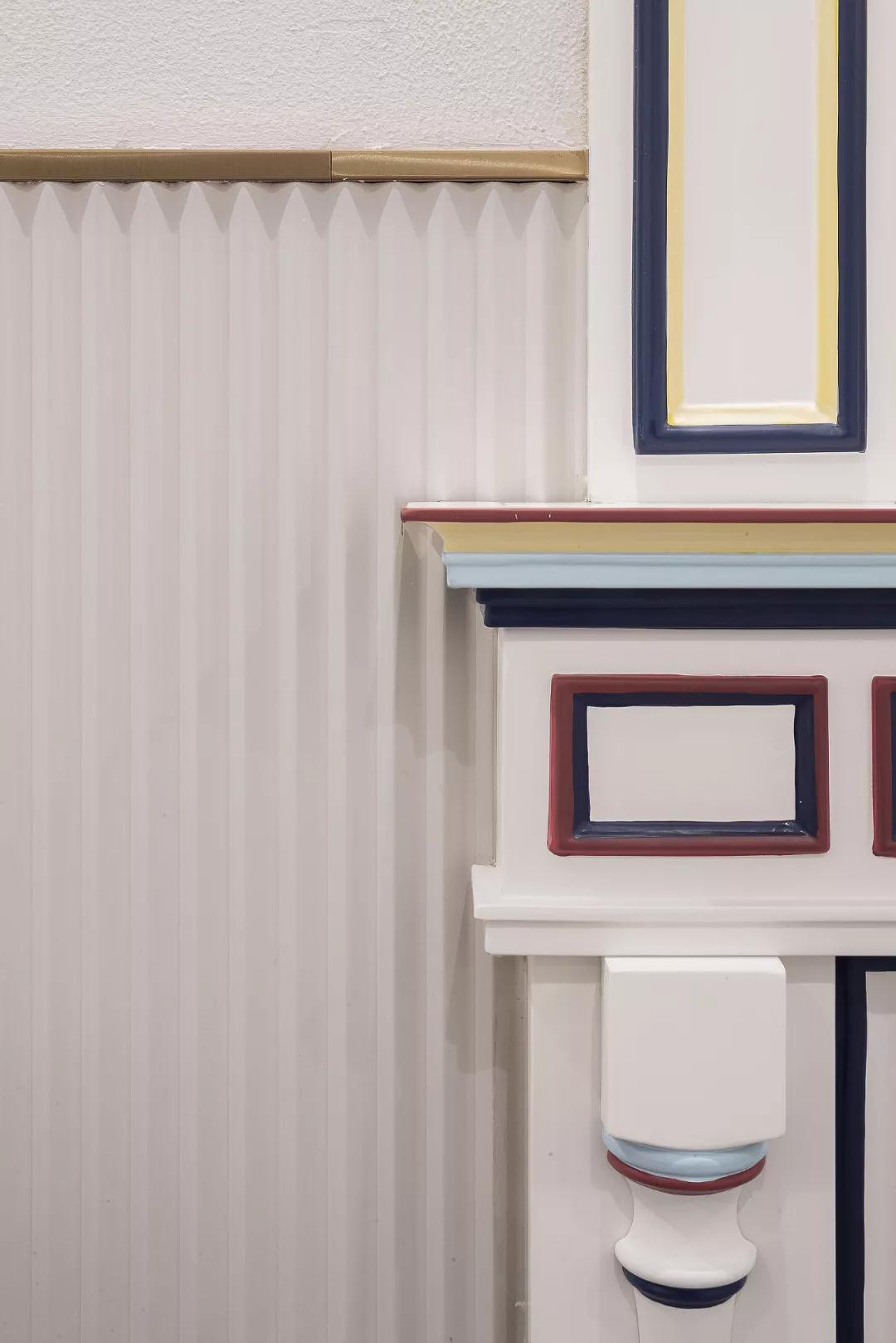二层的餐饮层作为办公层的服务空间,设计师将大部分的空间留给了商户,把设计重点放在了走廊的端头墙面,利用彩色的背景墙面和一些餐饮相关的趣味家具和装置在视觉上吸引人们的眼球,同时起到和人们互动的作用。