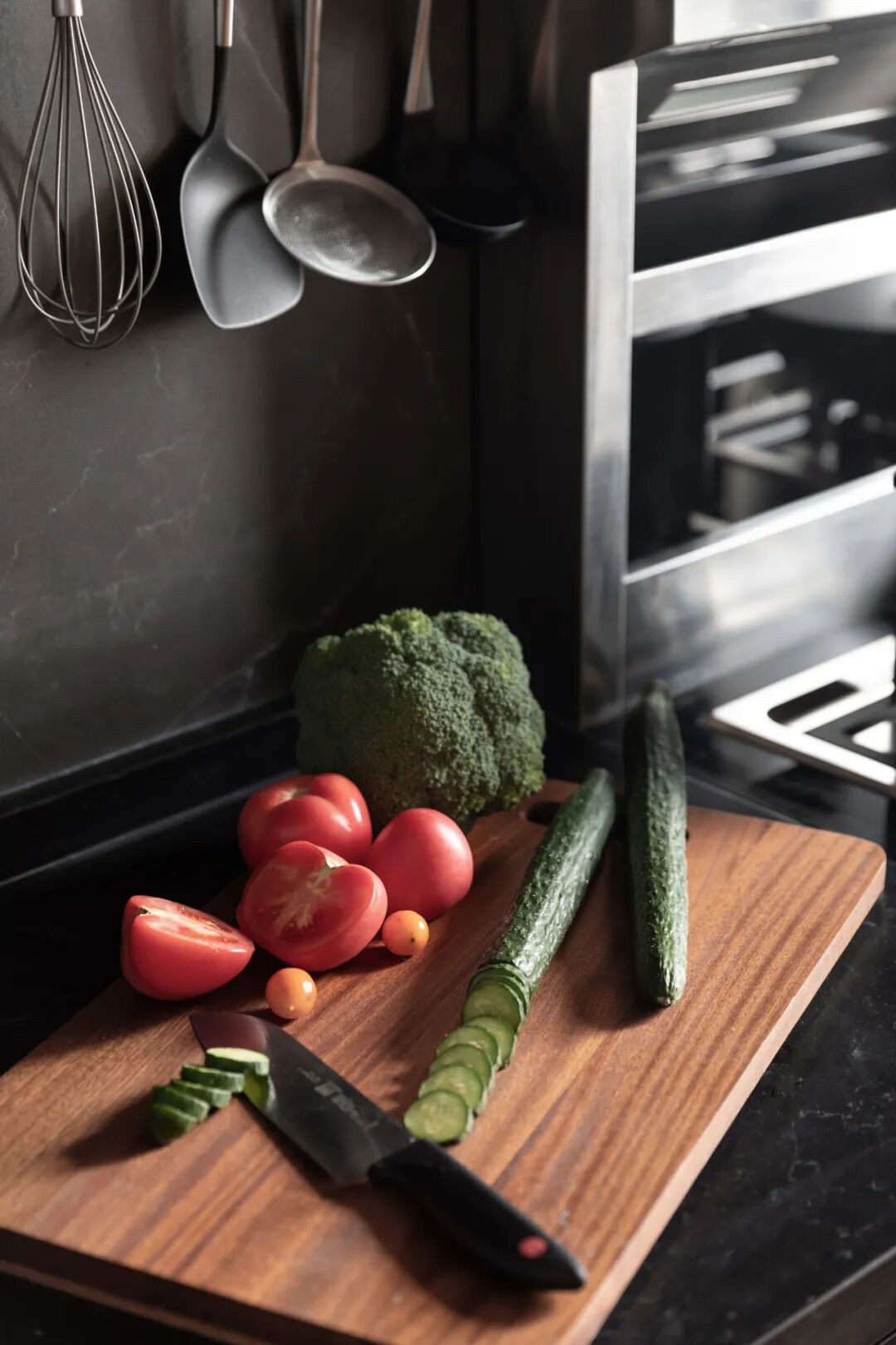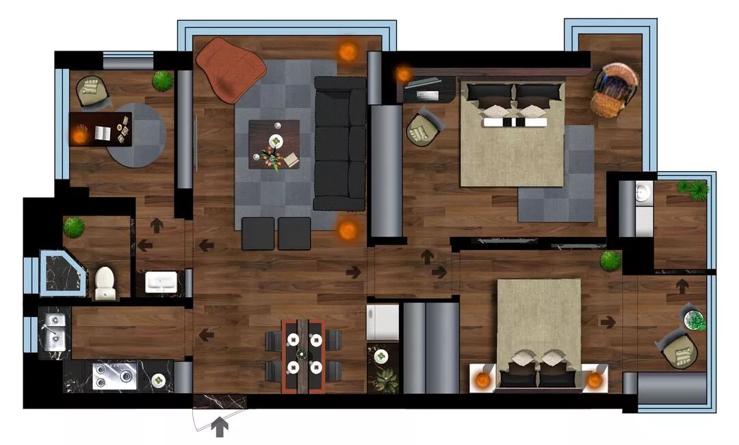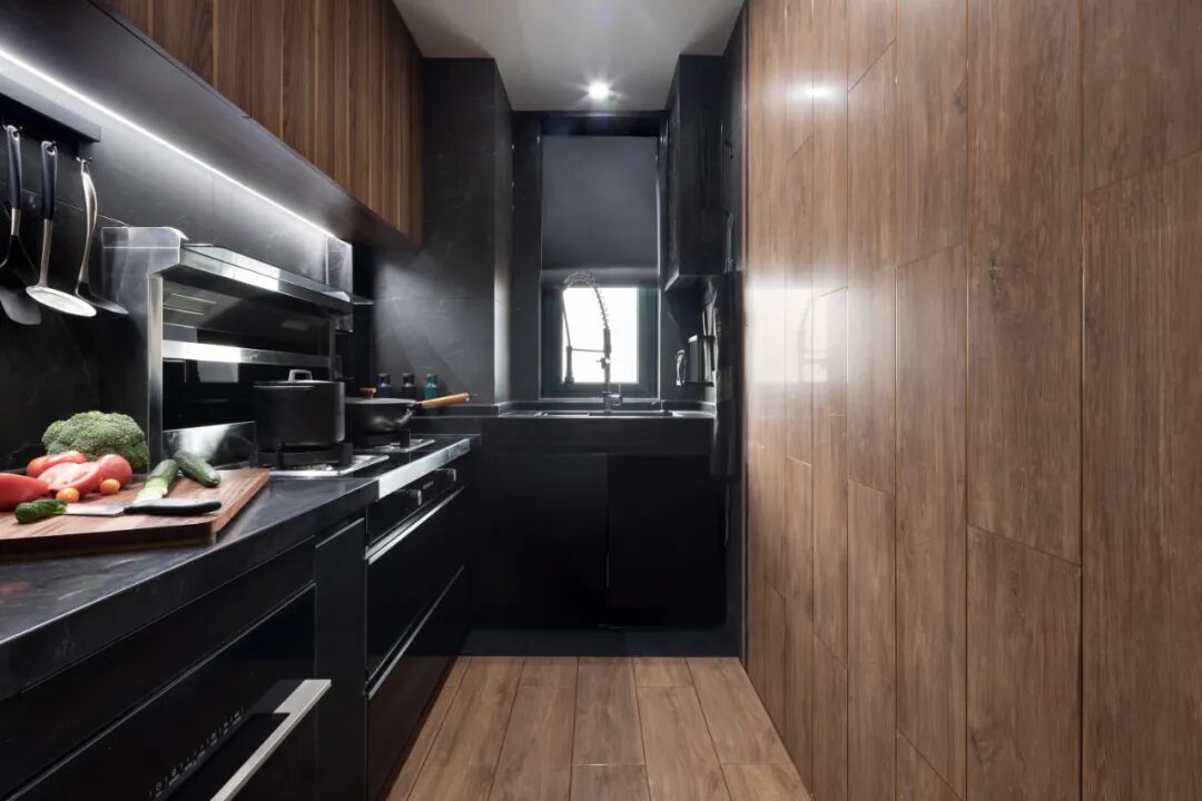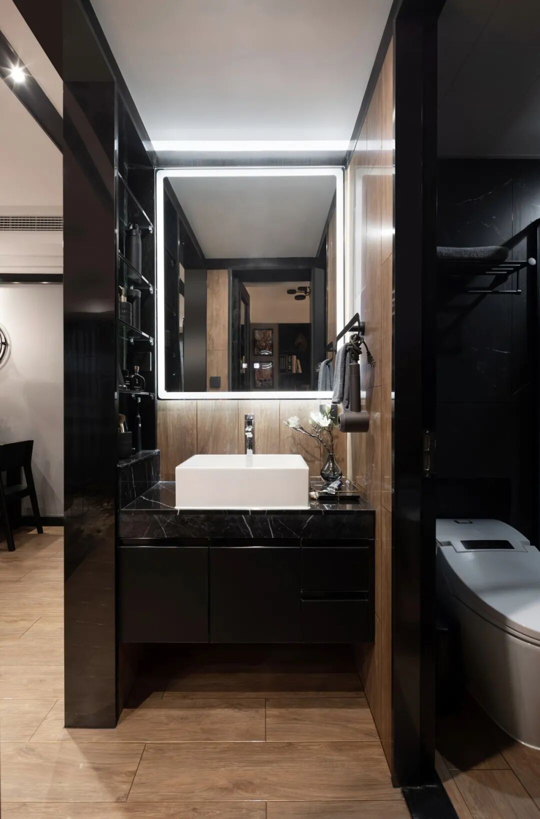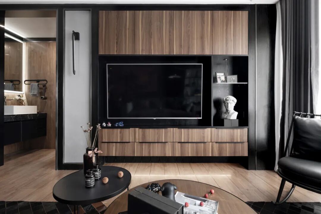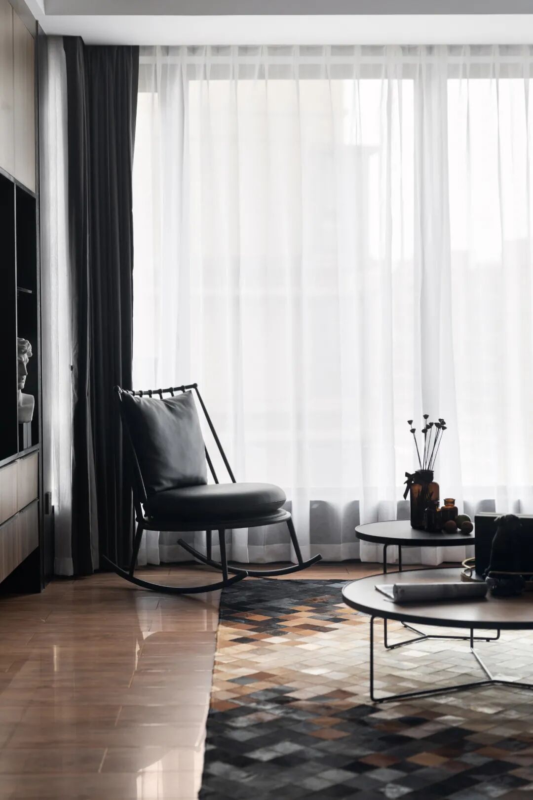 奢华的家要有安静的感觉,触动心灵深处,过多的装饰和颜色充斥生活空间时,让生活的人没法安静惬意,也就是失去了初心,丢掉虚伪的假面,将真实留下,才能返璞归真,恰到好处。由此,本案设计师摒弃过多浮躁的颜色从中提取了经典的黑白灰+胡桃木,绿色为点缀色。