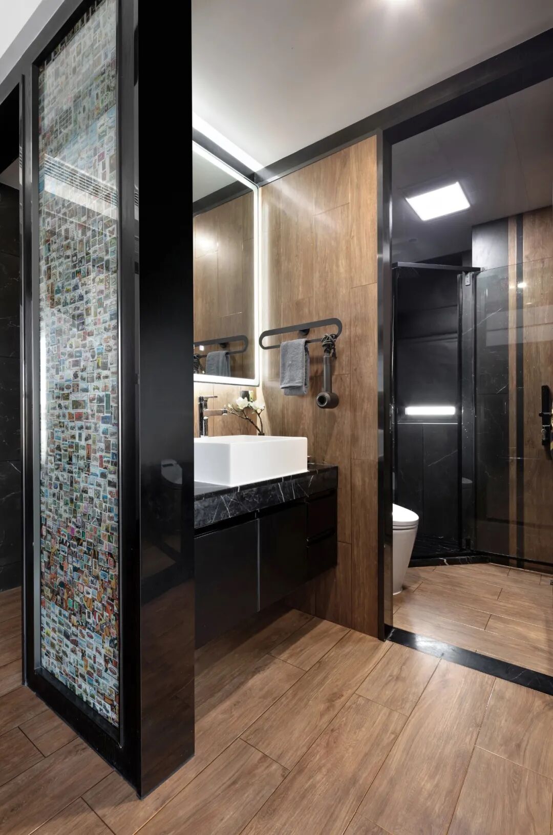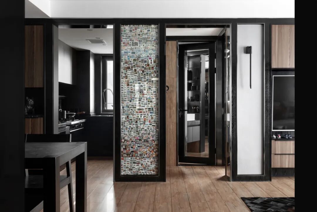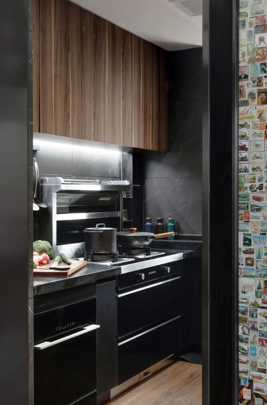 厨房与洗手间之间的邮票背景墙,让“家”更有情怀。