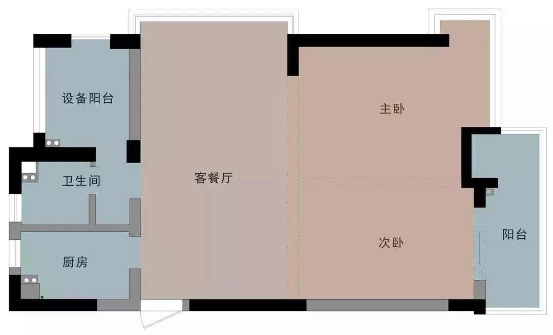 本案厨房餐厅设计采用半敞开式,且把厨房的设备延伸到餐厅的备餐台;客厅向书房借用电视柜的空间;卫生间实现干湿分区;主卧借用客厅空间做衣柜,借用墙体厚度嵌入式电视机;次卧借用阳台空间以及柜中柜的设计,让空间的互相借用让细节达到极致。