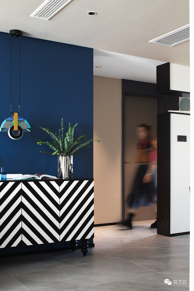 本案的业主一对年轻夫妻,女主人时尚而严谨,男主人敏锐而温暖!夫妻两人都喜欢简约,喜欢蓝色!蓝色是夫妻爱情的见证,在定主基调时以米克诺斯蓝色贯穿整个空间,从入门玄关墙到单人沙发,到主卧室的床背景,空间在米克诺斯蓝的点缀中让空间得到无限延伸的同时有一种港湾的悠闲惬意和宁静的放松与舒适!