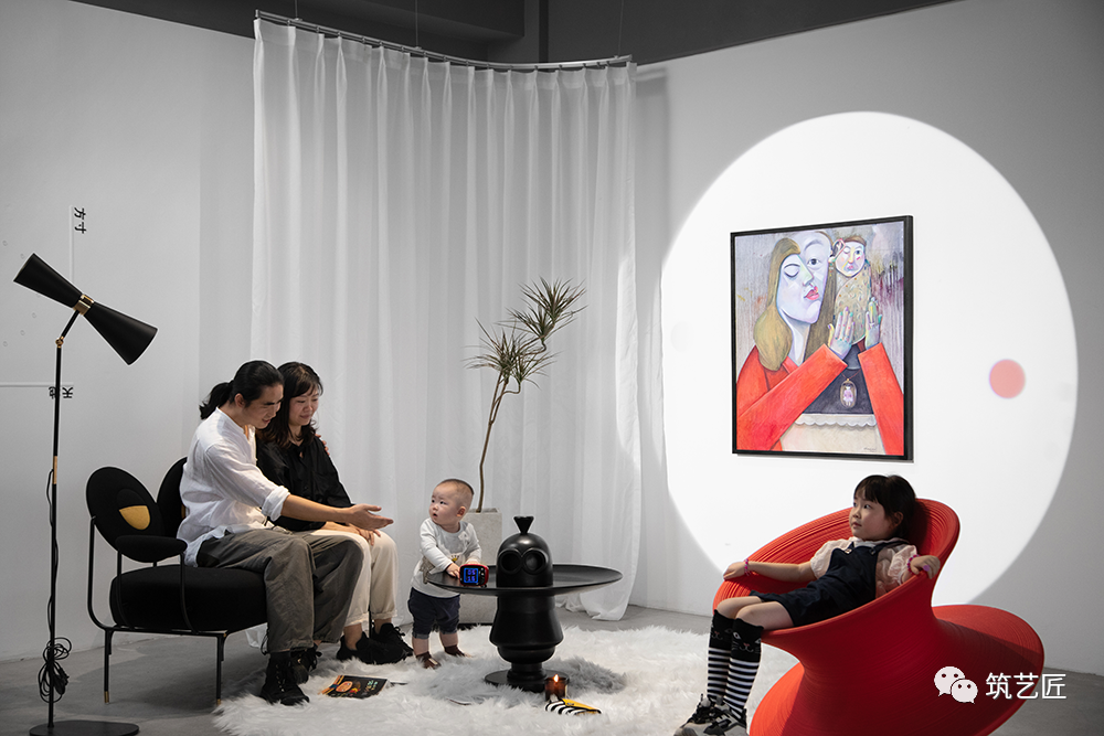 方寸之间如何让这幅作品更好的与空间融合并能得到观展观众的共识呢?我们以家庭中客厅的形式来呈现!因客厅是家人相聚共同活动的空间,这个空间中融合了每个人的喜好,个体的自由组合汇聚为整体的有序链接!