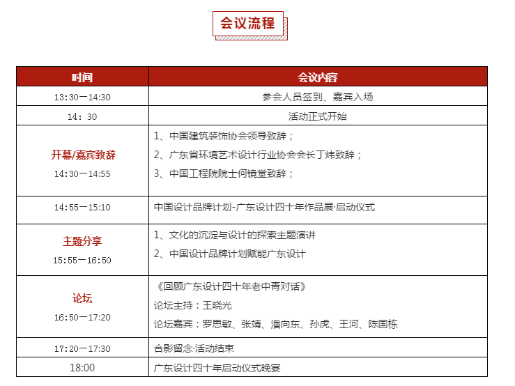 中国设计品牌计划为大力推动中国设计品牌匠心精神在全国的弘扬和传承,联合广东省环境艺术设计行业协会向中华人民共和国成立70周年献礼,特此策划“中国设计品牌计划-广东设计四十年”主题活动。盛会上将举办《广东设计四十年——建筑·室内·景观》纪念专辑刊物发布会暨四十年优秀作品颁奖典礼,以及“广东设计四十年”全国作品展暨粤港澳大湾区巡展。