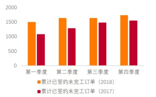 图6:2018与 2017各期全行业累计已签约未完工订单对比