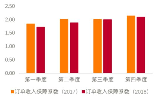 图7:2018与2017各期全行业订单收入保障系数对比