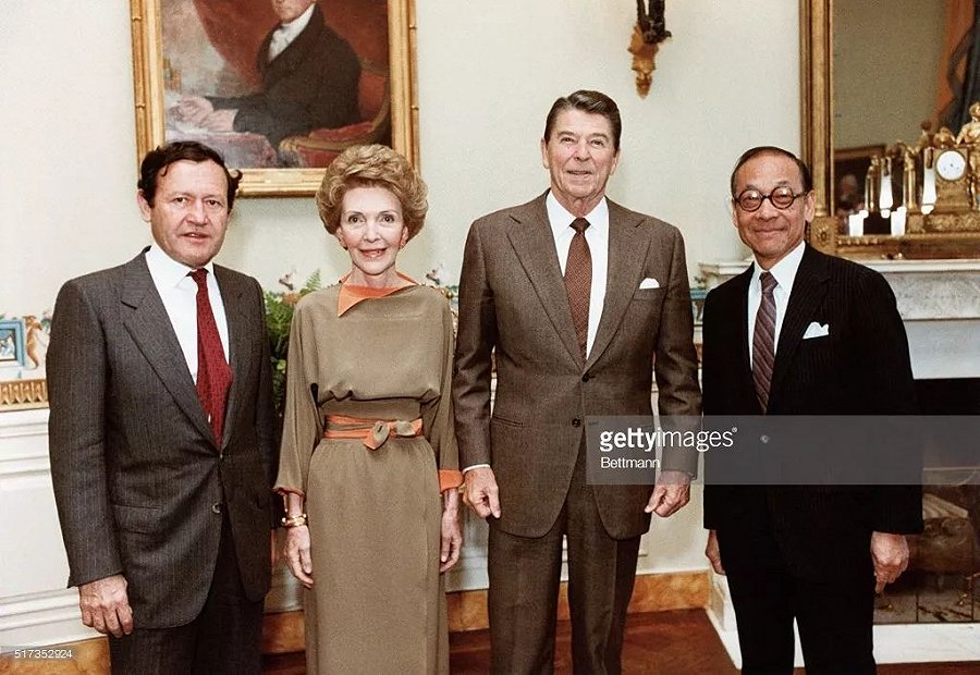 1983年在美国白宫:杰伊,美国第40任总统里根及夫人,贝聿铭