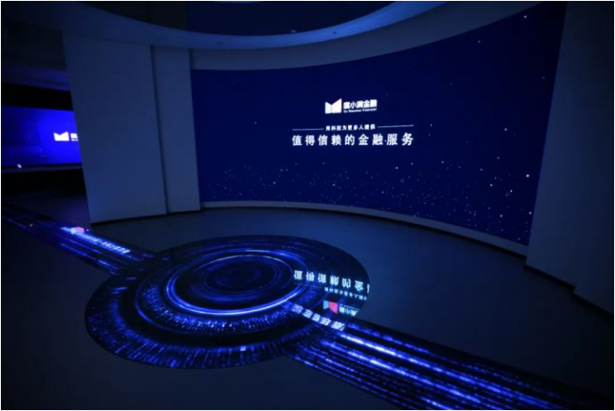 展示区包含企业历程墙、信贷科技、财富管理、智能保险、金融科技服务、人脸支付等六部分内容,展区的最大亮点为“普惠之河”,因“度小满金融”的企业理念与其具备的金融、科技、普惠等特质,打造了“普惠之河”的元素。体现小满节气之时水的重要性,“普惠之河”中融入的金融、科技、企业文化等元素,也象征着在普惠的道路中,“度小满金融”的重要性。参观者进入序厅后经右手边跟随流动的“普惠之河”依次进行参观。