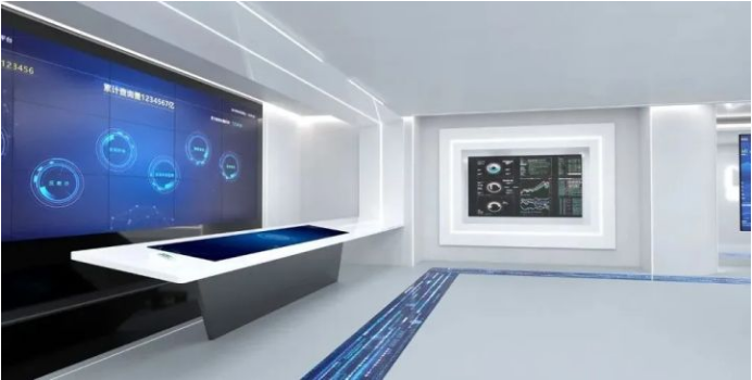 本展厅空间设计选择简约、大气的风格,每个展区均选择数字展项,无论从软性数字内容的更换角度,还是硬性空间氛围的设计角度,都能实现设计之初“整体效果要优于当下主流科技公司的展厅,且在未来3-5年内保持领先”的主旨。