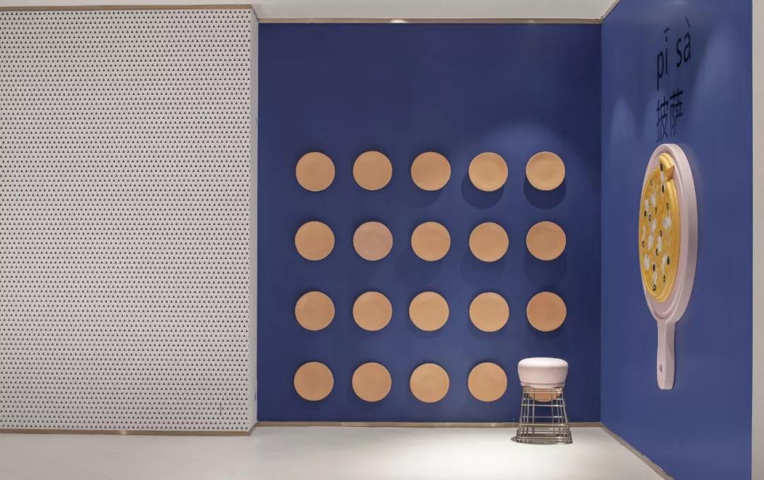 二层的餐饮层作为办公层的服务空间,设计师将大部分的空间留给了商户,把设计重点放在了走廊的端头墙面,利用彩色的背景墙面和一些餐饮相关的趣味家具和装置在视觉上吸引人们的眼球,同时起到和人们互动的作用。