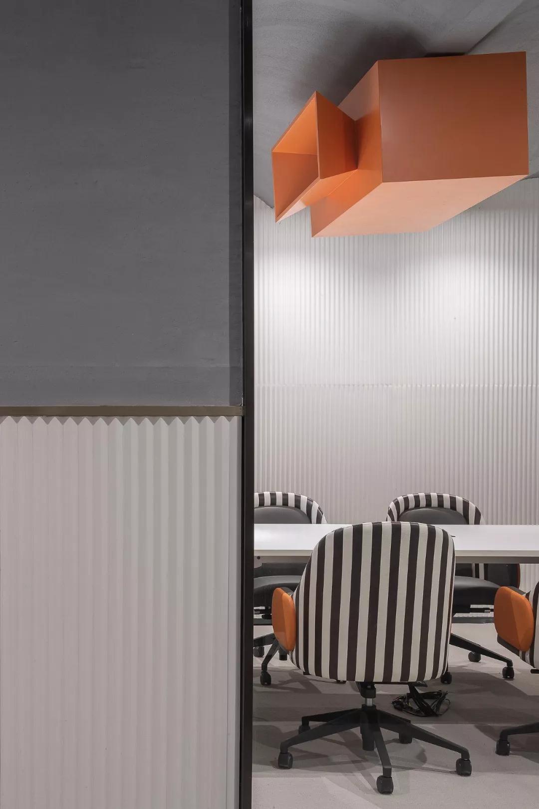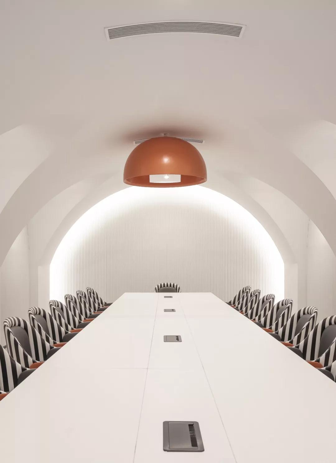 穿过客厅到达共享会议室和电话亭休息间,会议室采用简练的硬装,去除过多的装饰,将投影机的盒子作为一个视觉亮点突显出来。