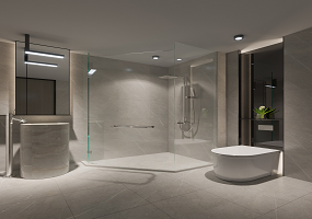 项目主材: 仿石材砖、皮革、墙布、爵士白石材